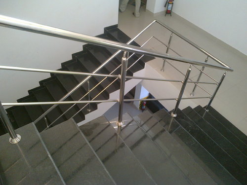 نرده استیل دو خط ( نرده استیل راه پله ) این نوع از نرده استیل از یک دستک در بالا و دو لوله در پایین به صورت افقی تشکیل شده است که با توجه به درخواست کارفرما پروژه انجام گردیده . مکان نصب نرده استیل در راه پله بوده و آلیاژ نرده استیل مذکور 201 ( به دلیل ارزان بودن نرده استیل )میباشد .